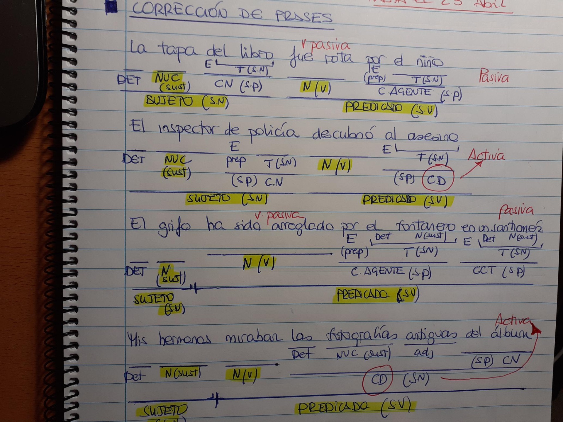 Corrección de análisis sintáctico en Activa y Pasiva (23 abril)